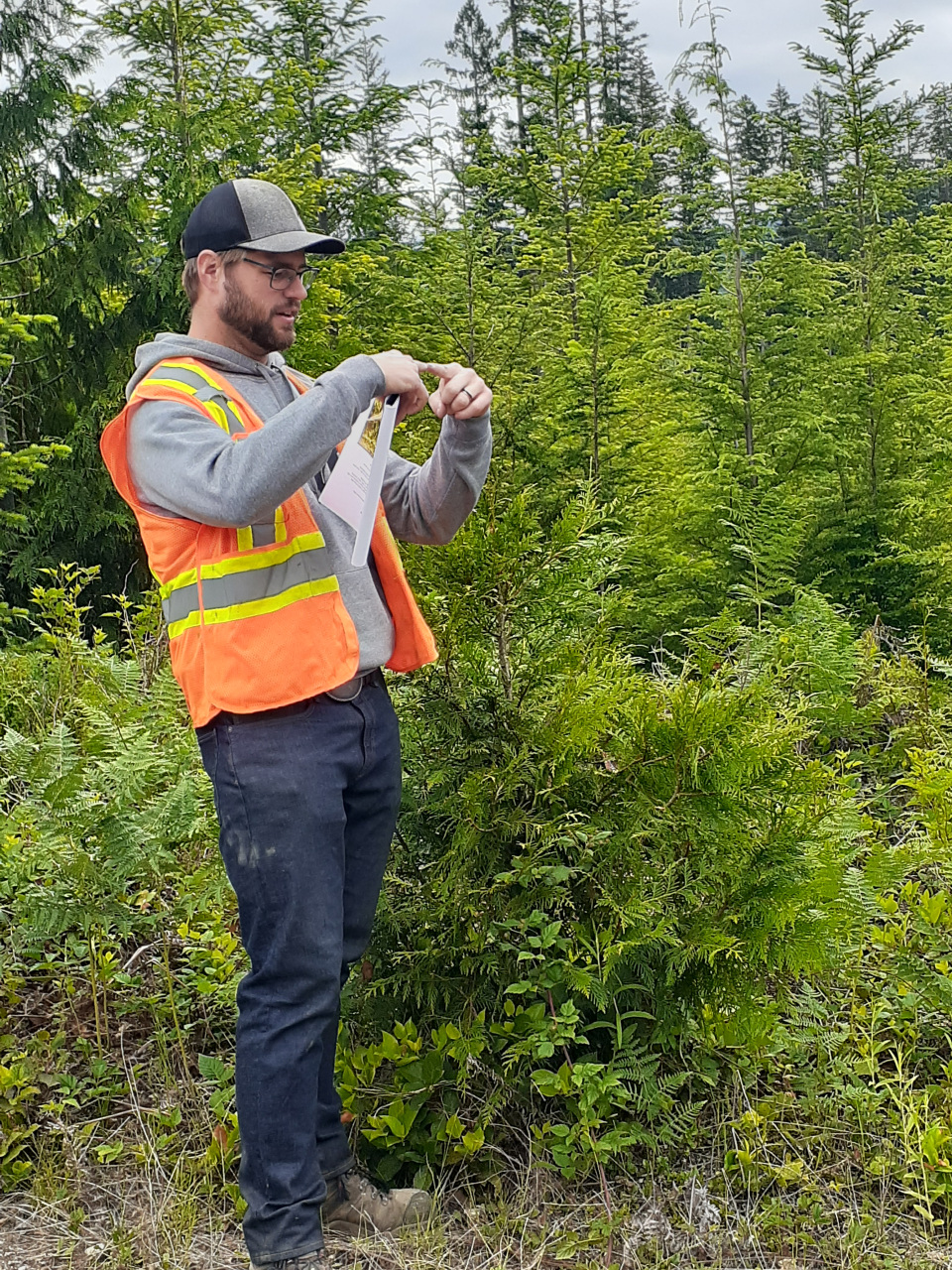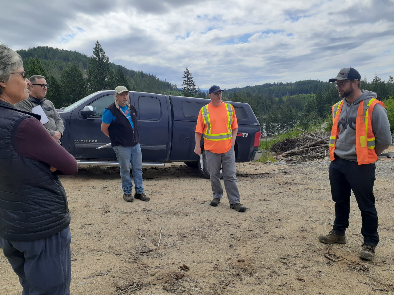Eleven club members headed into the Horseshoe Valley area to learn how forests are regrown after harvesting. Our guides for this trip were Darwyn Koch and Geoff Matheson – both Registered Professional Foresters with Western Forest Products. Our 1st stop was along Dixon Road where we saw a block about to be harvested, and learned a bit about its history, composition, and harvesting and retention plans. From there we moved on to a recently harvest block, and saw a Ministry of Forests silviculture trial testing different Douglas Fir seed stocks. After that we saw forest stands aged 13 and 23 years, and learned a lot about what it takes to get a new forest through its first few years (it isn’t always easy!). Complications arising from drought, Elk browsing and trampling, brush growth, and other tree species can make it quite challenging. It was then time for lunch, and we found a nice spot down at the Canoe Route landing on Horseshoe Creek. Our guides were kind enough to continue answering questions all through lunch!