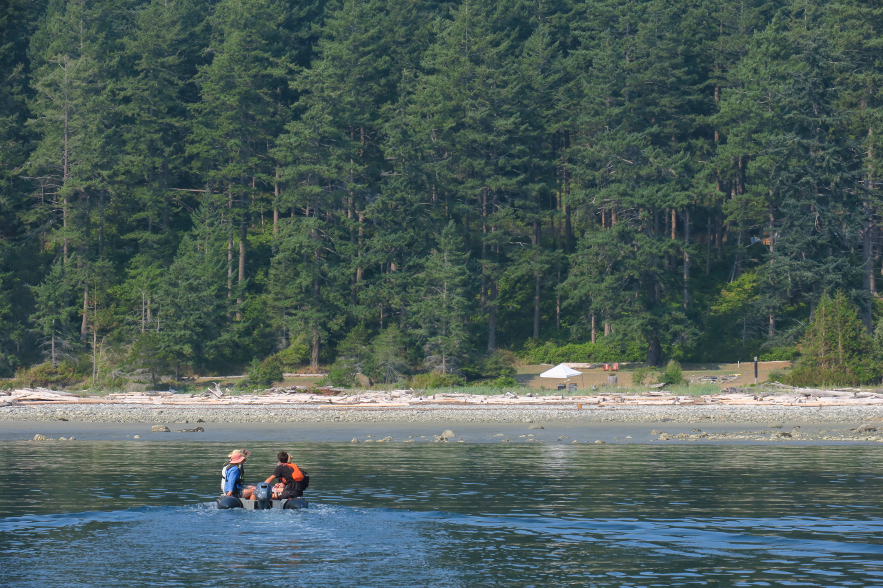 After a short swim off the boat, Jonas hoisted the main sail and we cruised past Bliss Landing through the narrow channel of the Copeland Islands. Jonas pointed out the metal ‘dolphin’ pilings that log booms are tied up to wait out stormy weather. Just north of Lund our return was delayed by a family of 4 Orcas and we were fortunate to observe them feeding from only 150 metres away. It appeared they had caught a seal so there was lots of excitement as they put on quite a display. These special moments are never planned for so it was the perfect ending to an already glorious day.