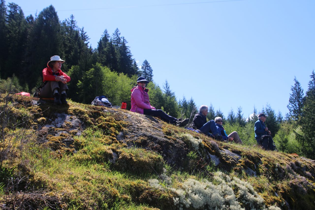 Well, we’ve talked about doing this trip for years – and finally did it. Thirteen of us took the Saltery Bay ferry and shuttled to the trailhead using “Tom’s Uber” . We walked a couple of km along a well-maintained trail to Ambrose Lake Ecological Reserve – and then the music died.