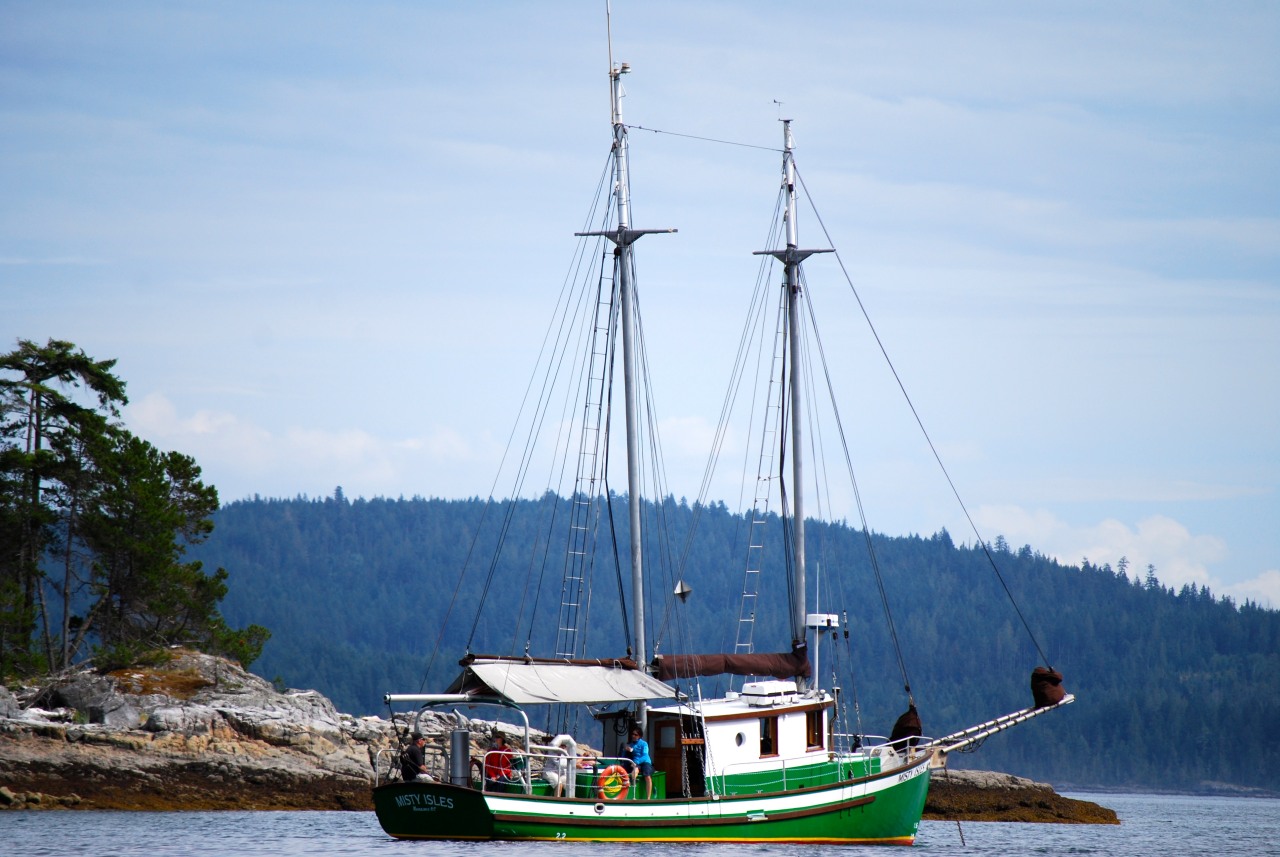 It was a perfect July day in Lund when 12 naturalists boarded the Misty Isles in search of rocks. Captain Mike and crewmate Amy had planned an exciting two-day circumnavigation of Cortes Island for us. From Lund Harbour we first headed north towards the Twin Islands.