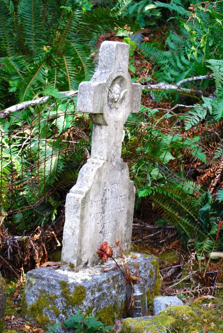 We travelled to the location of a stream that drains below a claim site on West Redonda Island. Here we came ashore and we found assorted interesting cobbles including magnetite, basalt, diorite, granodiorite, and a rich sulphide. (You know the rocks are interesting when the geologists take back samples for themselves!) Another treat at this location was the mysterious albeit beautiful gravestone belonging to two small children named Lucey. The grave is still a mystery more than 100 years later. The setting of the stream was idyllic and the water so clear that many of the group took time out to have a quick dip in the ocean.