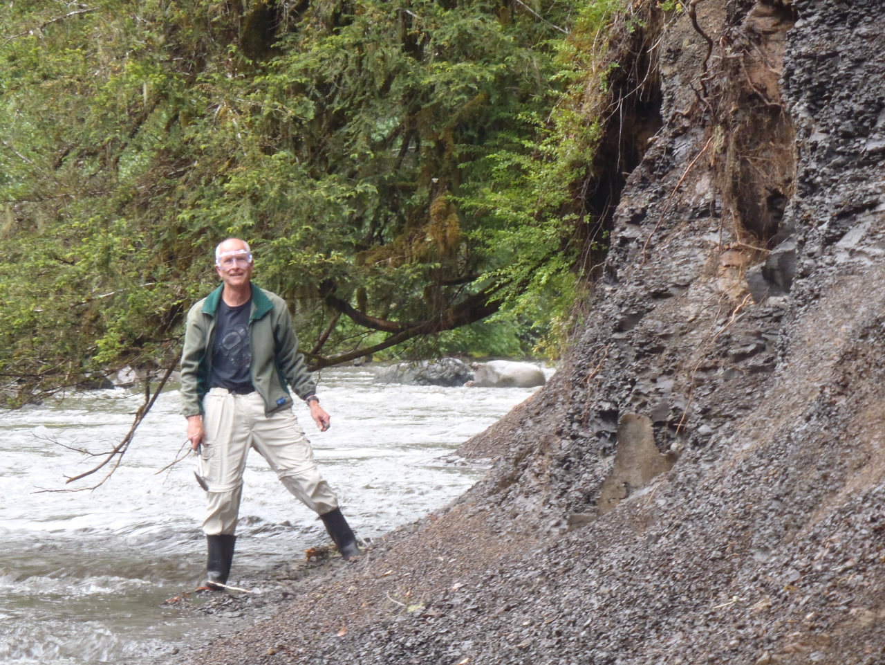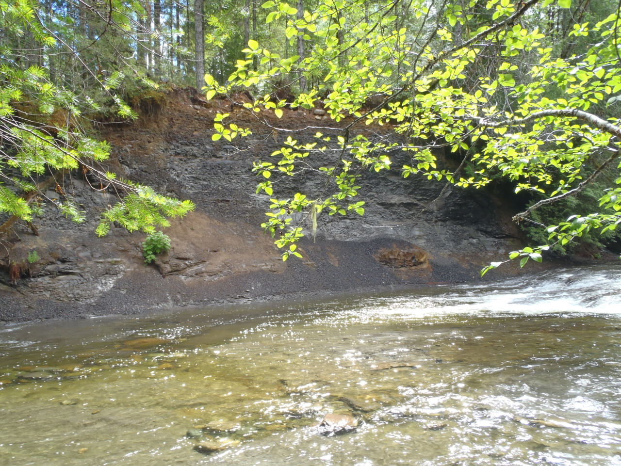 After getting inspired by what we could find, we met at the Trent River and walked down to the banks of the river with safety glasses, chisels and hammers. After getting some instructions from Pat and his student, we picked away at the loose sedimentary deposits for an hour before a torrential rain descended upon us.