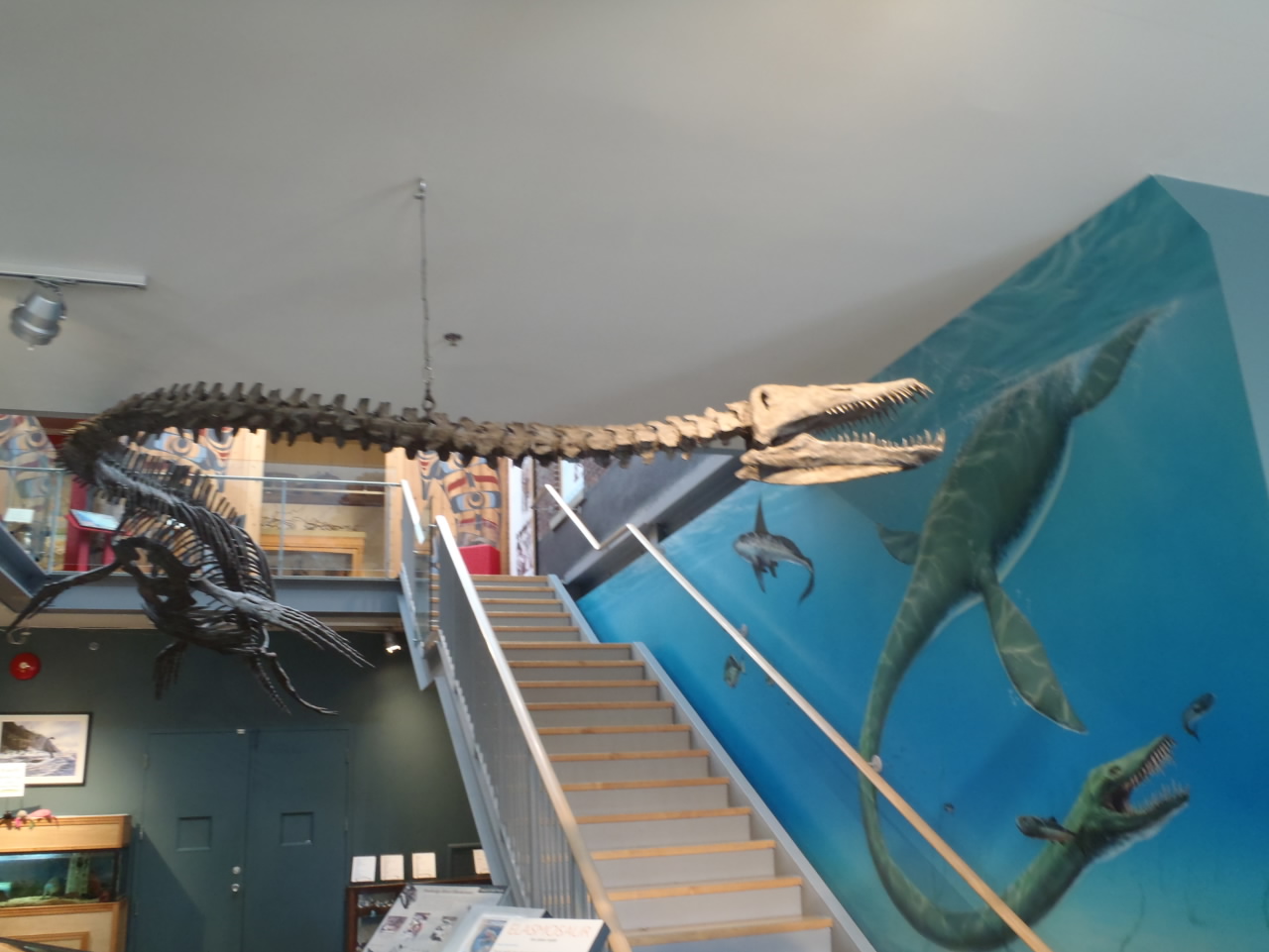 Many of these prehistoric marine reptiles were first discovered in the Comox Valley! Although many of the bones and fossils found on Vancouver Island are stored in the basement of the museum, the skeletal reproductions are based on those finds as well as comparisons made of dinosaurs found elsewhere in Canada and around the world. These were some very dangerous looking creatures!