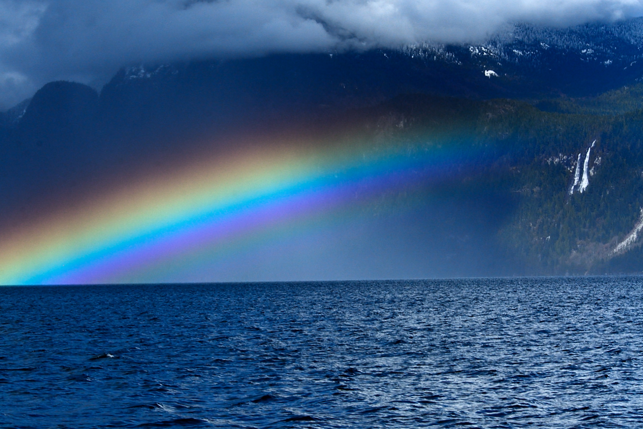 Once we passed by Malibu Camp and through Malibu rapids, we boated up the 5 miles of Princess Louisa Inlet. This steep sided, narrow fjord carved out by glacial action, has walls of granite rising straight out of the water to heights of more than 8,000 feet. At Princess Louisa Provincial Park we were able to take a short walk to Chatterbox Falls and enjoy our lunch in the covered area or at the bench with the spectacular view of the falls and inlet, before returning to Saltery Bay. We were even treated to a few glimpses of sunshine.