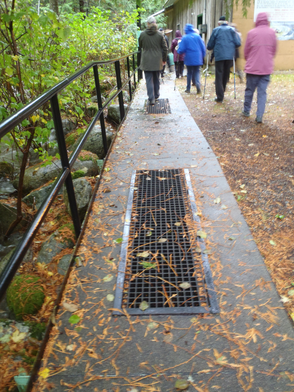 We met at Lang creek on a drizzly morning where we were met by Phil and Tesarlatwo of the hatchery’s staff. With our overnight down pour they had been up all night. They had been monitoring the rising creek levels and keeping the water intake for the building free of debris.