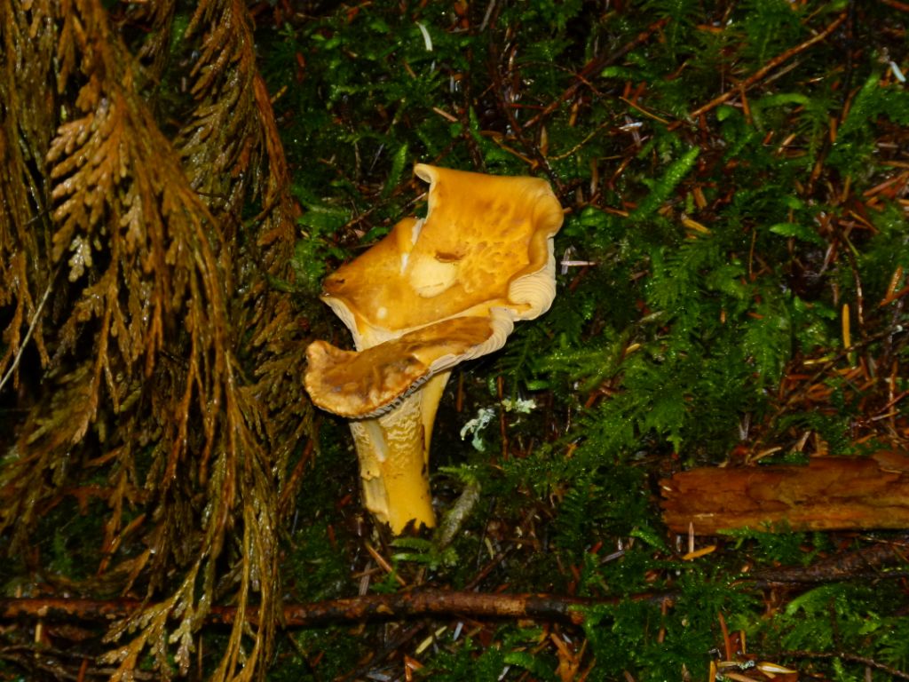 We were able to compare a Chanterelle spp. (edible) to a similar looking Gamphydrus (toxic), and differentiate the two by their gills. We then split into small groups and searched for mushrooms on our own. After an hour we regrouped and laid out the specimens we had gathered.