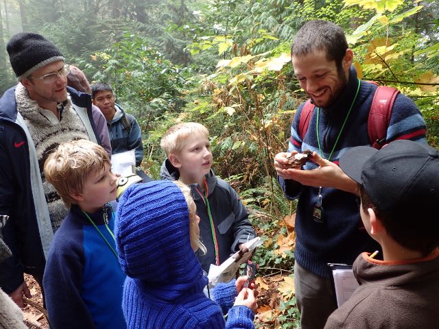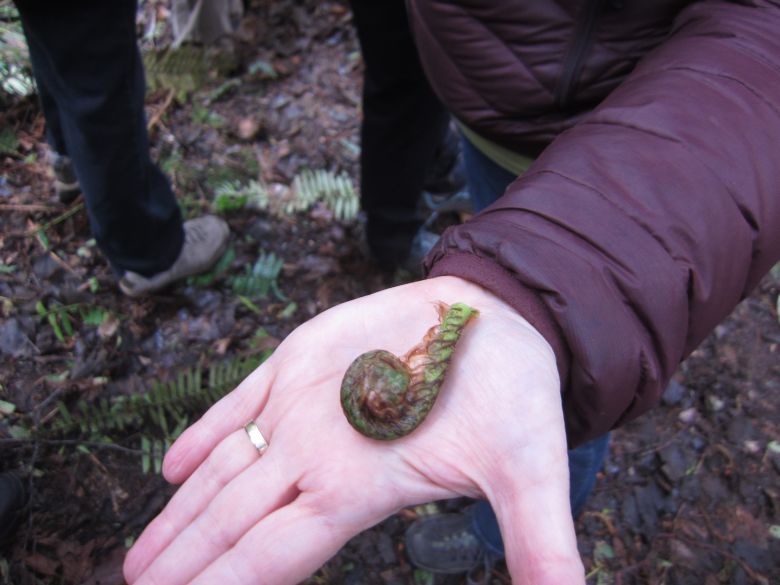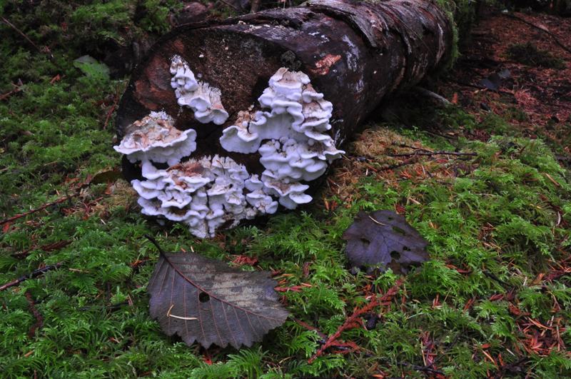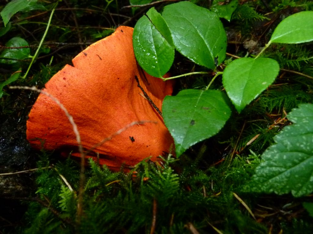 There we found some summer Oysters (Pleurotus ostreatus) growing on an alder log, which Izi said was unusual to still be out at this time of year. She pointed out a patch of Lobster mushrooms (Hypomyces lactifluorum), which are very unique in appearance and easy to identify. Lobster mushrooms are edible but she cautioned that they colonize other mushrooms, so could colonize toxic mushrooms which would make them toxic as well!