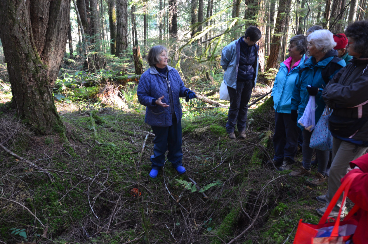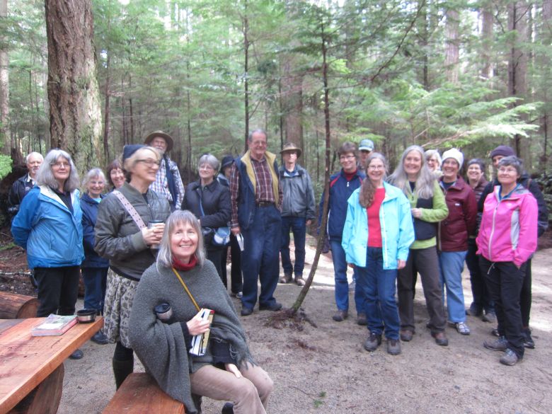 Sixteen members met at Squirrel Crossing on this perfect fall day to learn about mushrooms. After handing out an introduction to mushrooms and showing us a stack of reference books she suggested to help with identification, Izi Loveluck guided us up a loop trail to point out examples of a variety of different mushrooms.