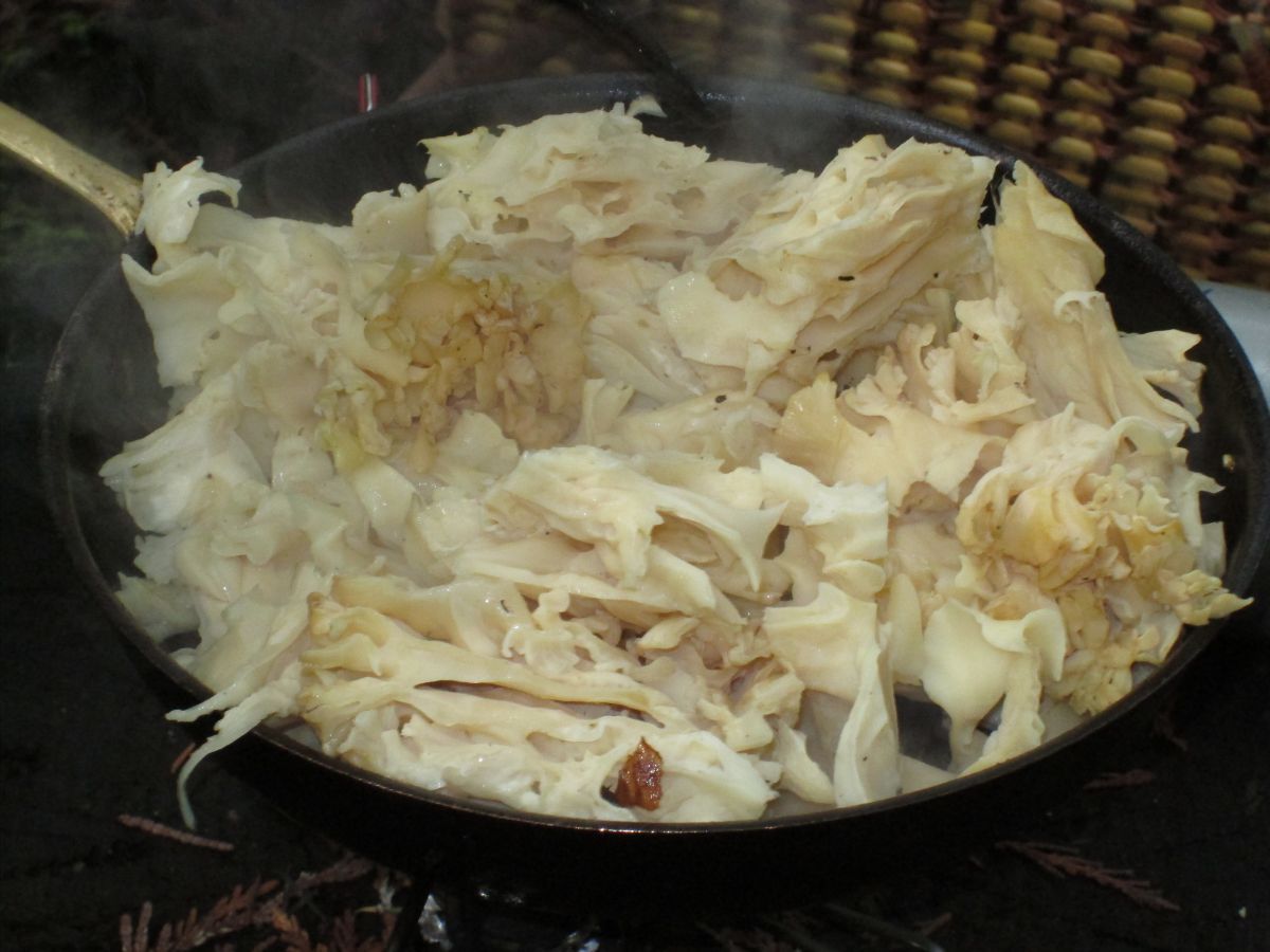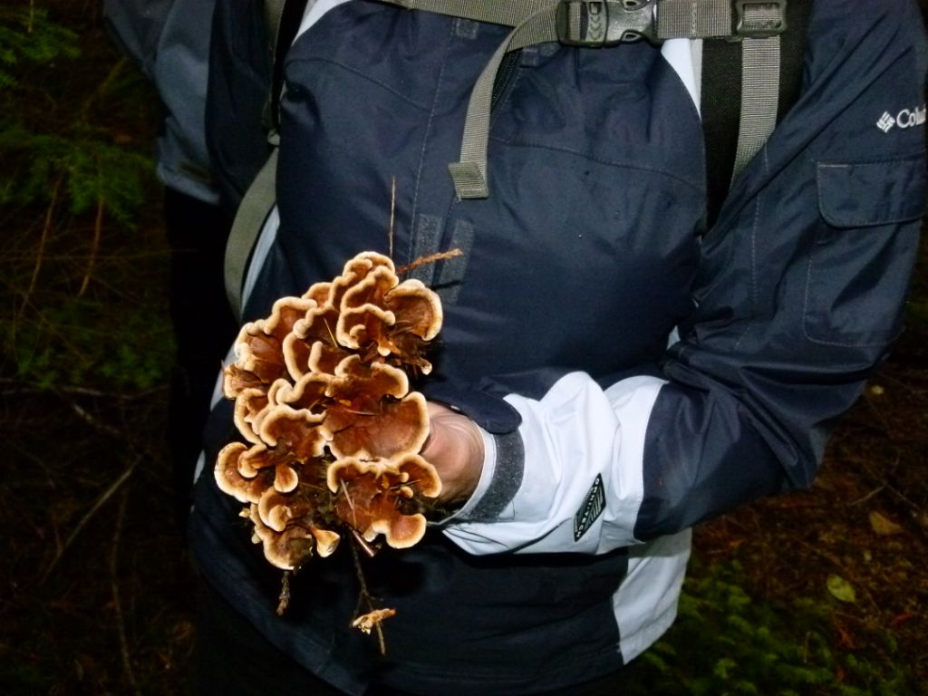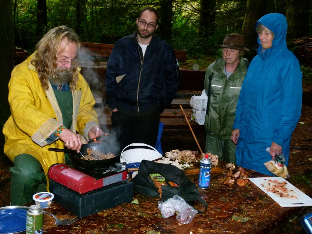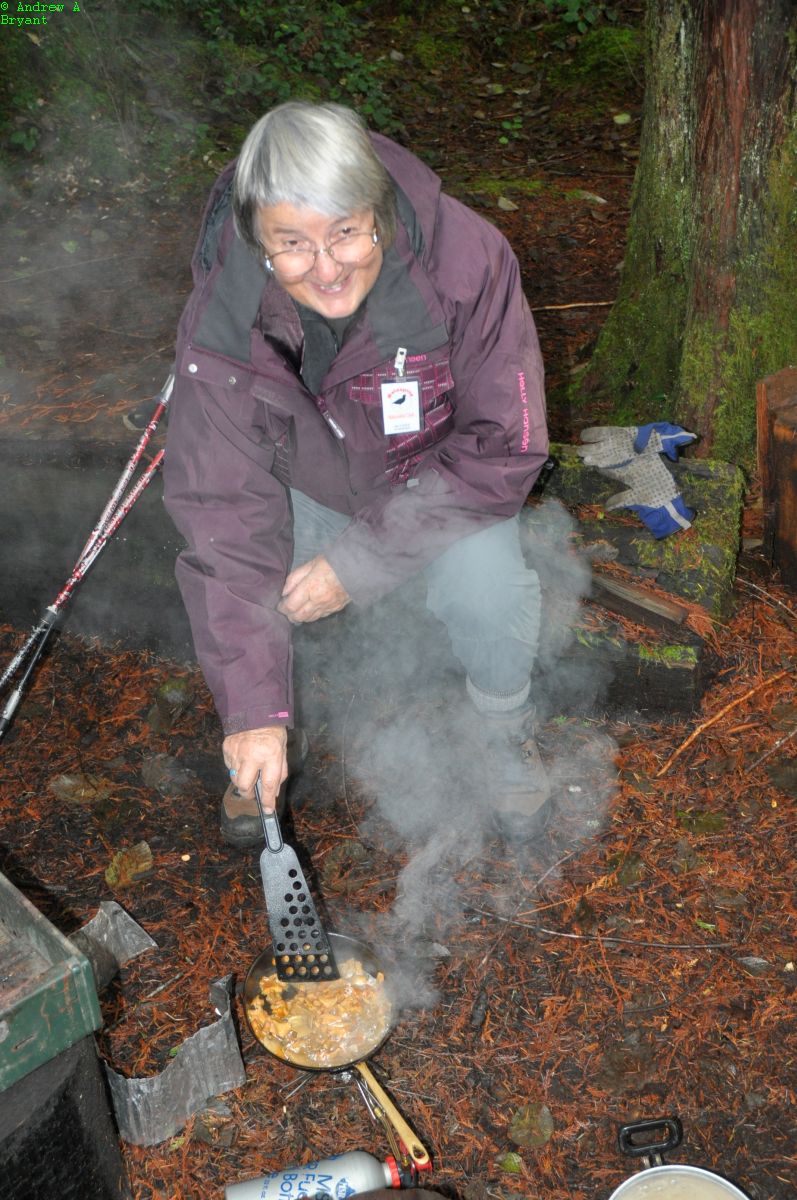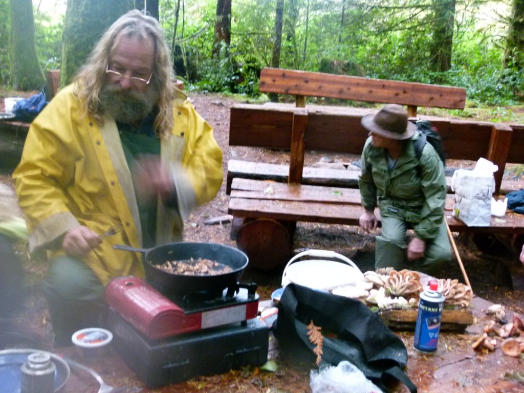 David Bedry generously provided his stove so Izi could cook up some of the Chanterelles we had found and an Oyster mushroom. The secret to cooking mushrooms we were told, is to fry them up in a dry pan so most of the moisture evaporates, then add lots of butter!