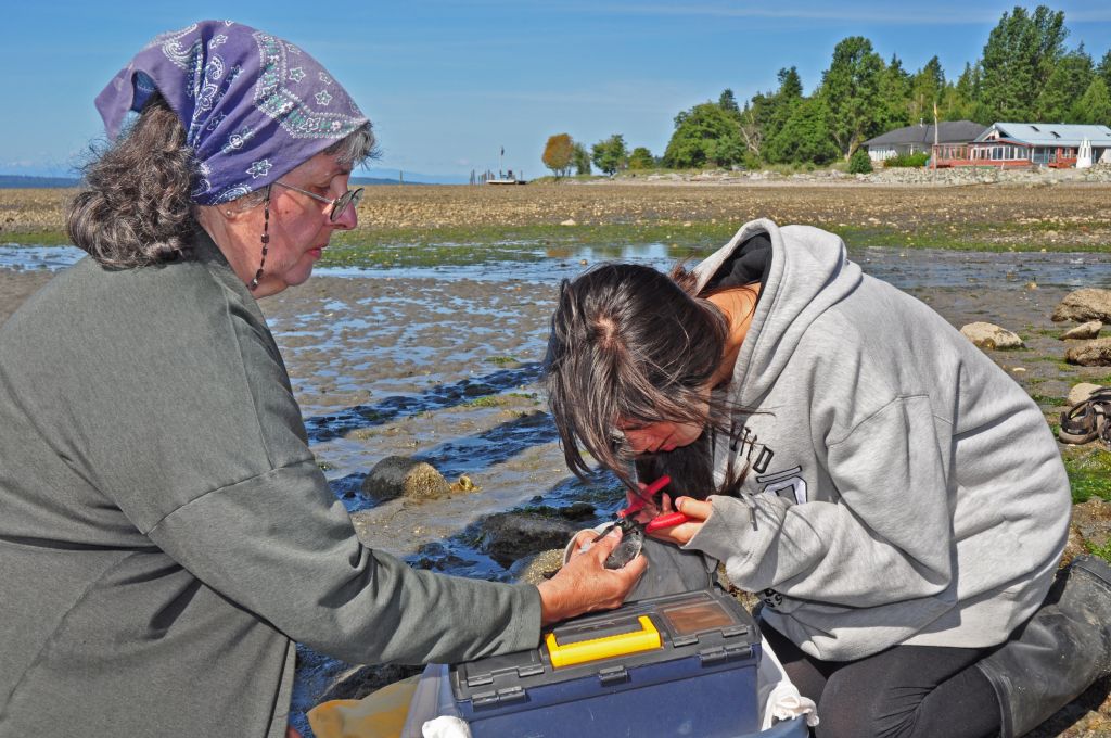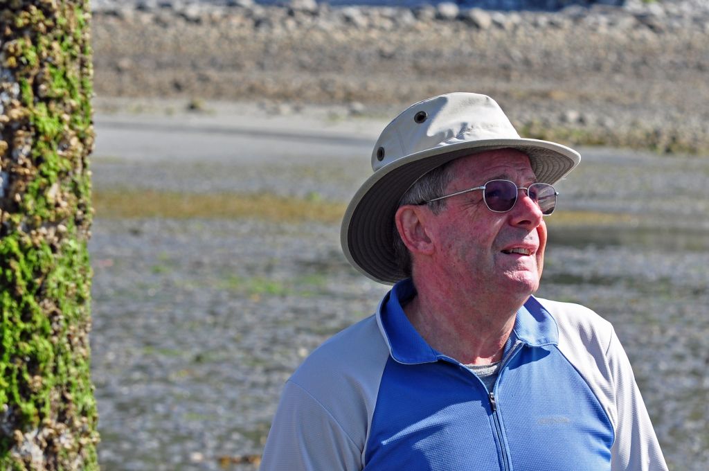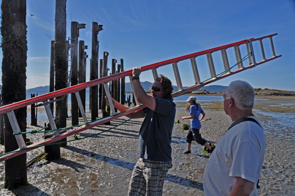 Fifteen club members and a few interested passers-by participated. Together we braved the bright sun, quiet winds, noticeably low tide conditions, and still waters to cross the 500 metres or so that separate mainland B.C. and Myrtle Rocks.