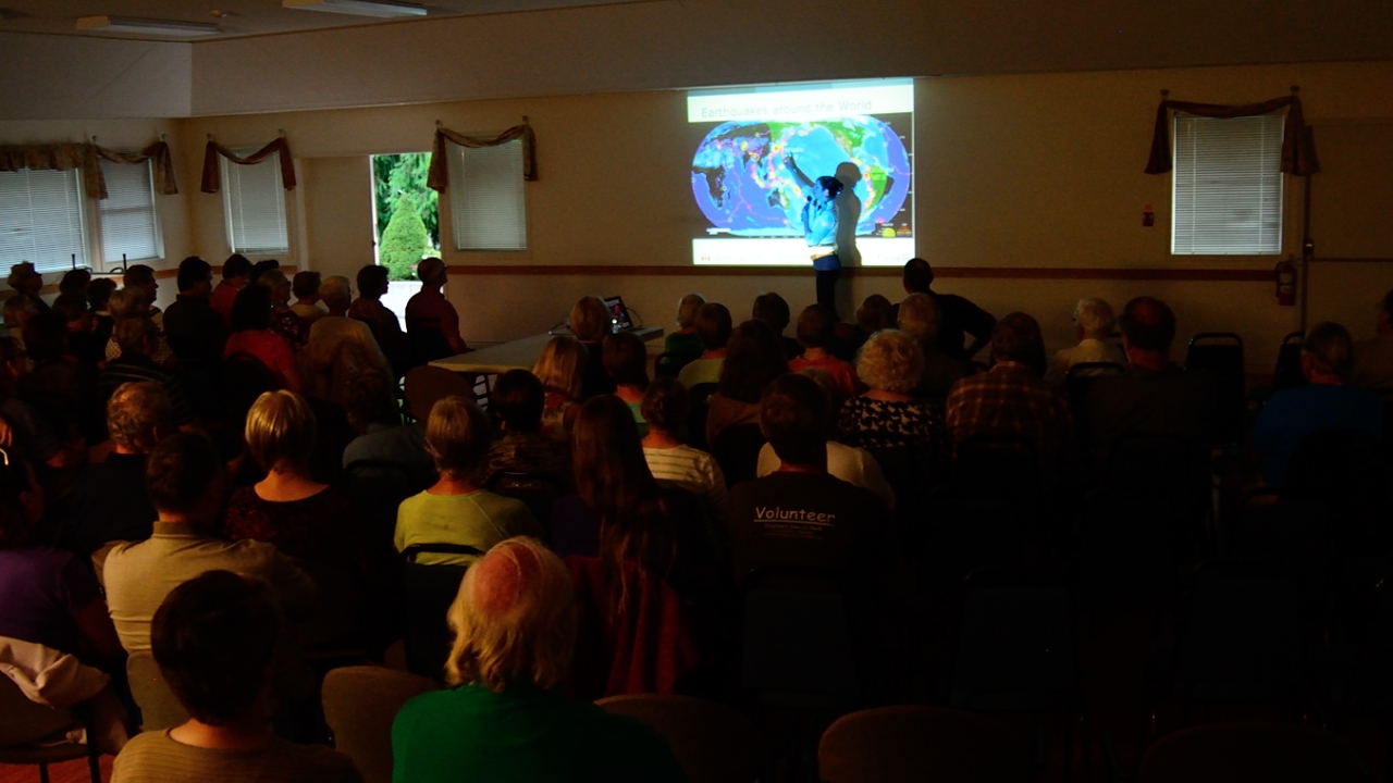 Beginning with the amazing story of how researchers were able to date, to the day, a massive earthquake that hit waaaay back in 1700, Alison took us through the basics.  What are fault-lines, subduction zones, and plate tectonics?   How big is big?  An excellent one-page primer can be found here.