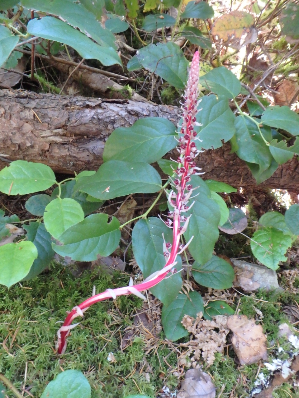 We learned that many of these plants live on dead and decaying vegetation, but some like the Indian-pipes and Groundcones are parasitic on other plants. They don’t have green leaves and chlorophyll, but interestingly some of them are in the winter-green family. Because these unusual plants don’t seem to be very long lived, we were lucky to find some striking Candysticks in full bloom, a few Coralroots of varying shades of orange and purple, and a Pinesap.