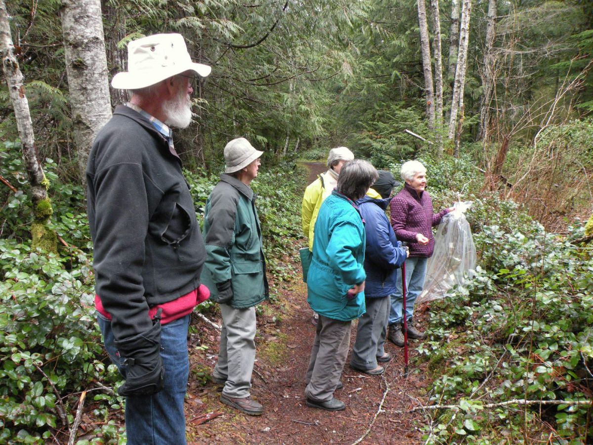 She pointed out to us various twigs, such as huckleberry, hardhack, salmonberry and pacific crabapple. We learned the difference between a yew and a hemlock and can now identify bunchberry, oregon grape and salal.